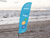 Mettre pleins feux sur votre entreprise ou association ? Ce drapeau de plage peut être utilisé presque partout et est le matériel publicitaire idéal ! Le drapeau est en polyester imperméable (110 gr/m²) et peut être imprimé aux deux côtés.