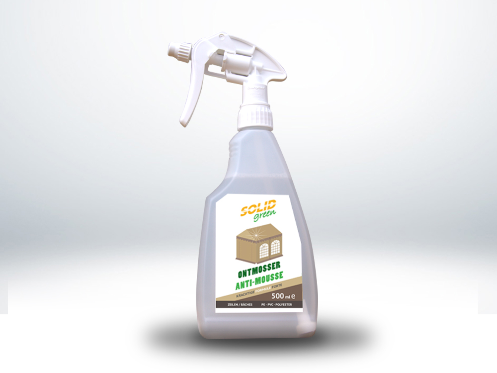 Mousse ou de la moisissure sur la bâche de votre tente de réception ? C'est du passé avec le Solid Green anti-mousse, un antifongique fort qui nettoie tout les taches sur des voiles en PE, polyester et pvc sans peine.